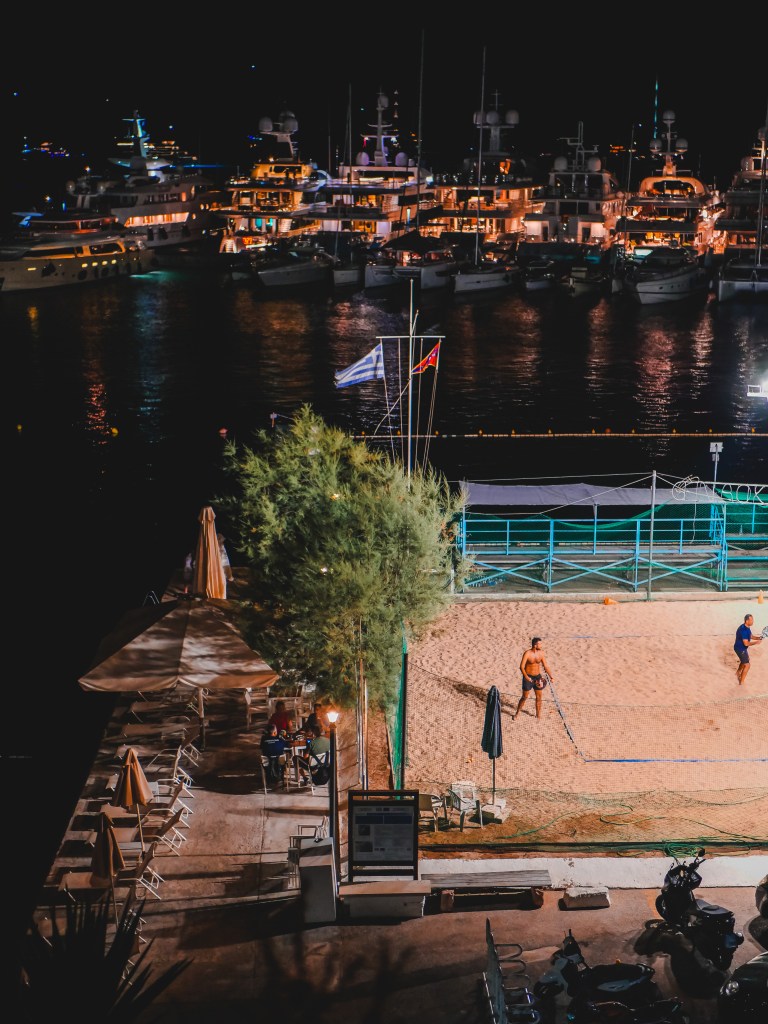 As the sun set, we enjoyed the soothing music of a live Greek band on the beach, which made our cockpit a lovely place to be.