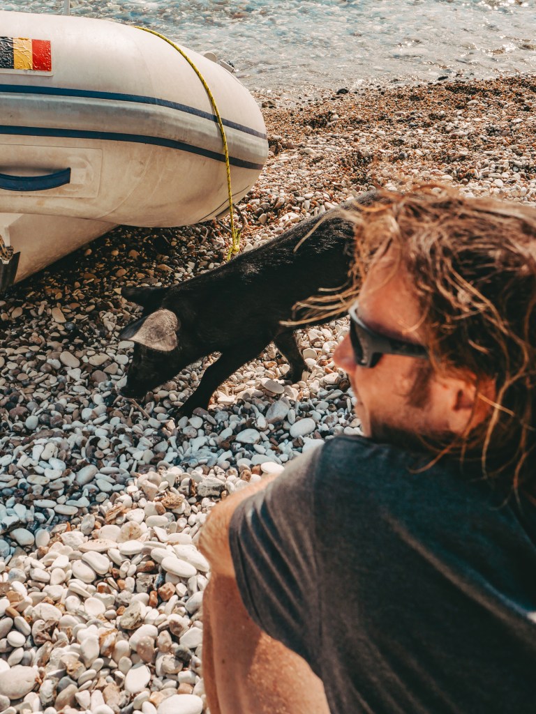 After taking a break for five months, as we stayed in the marina of Agios Nikolaos, we were thrilled to set sail again and feel the freedom of the open sea. But our excitement turned to surprise when our new family member Finn, our cat, got seasick. Poor Finn had a dramatic moment of vomiting that reminded us of a scene from a scary movie. Luckily, once we anchored, Finn bounced back quickly and was soon playing around like usual.