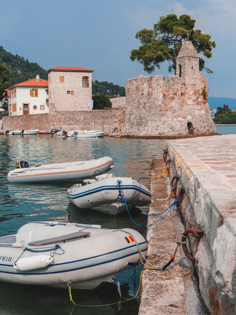 We set off early and arrived in Missolonghi around midday. The colourful houses and docks along the canal caught our attention, and we even saw pelicans in the distance.
