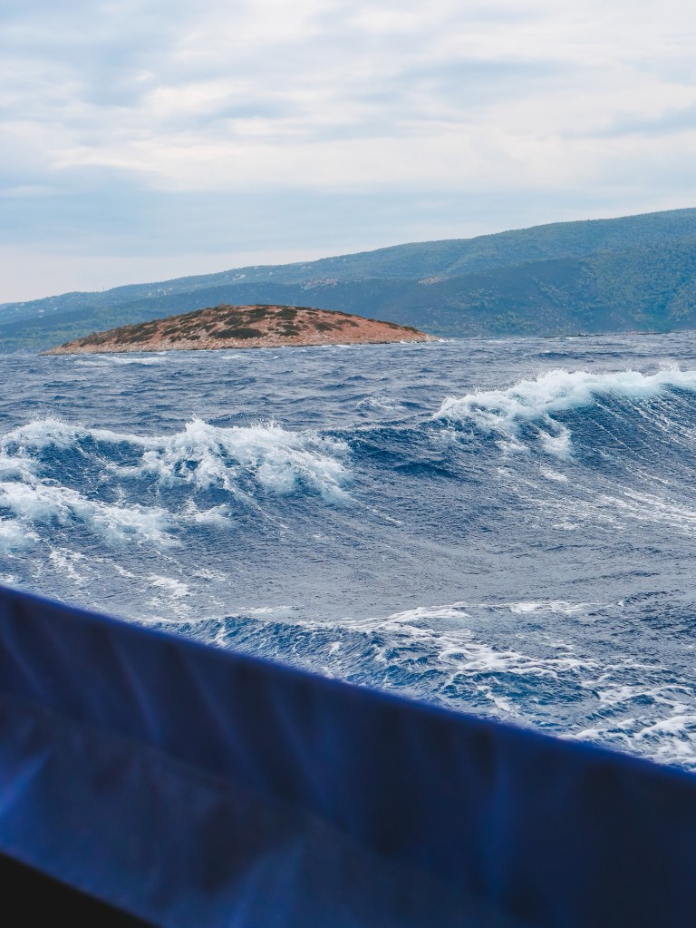 Our time at Porto Kagio was marked by persistent strong gusts that mostly kept us confined to our boat. The weather didn’t stop us entirely though; we did manage to explore the town, which was essentially a single street, and took a short hike further inland. However, our main priority was getting the boat ready for our next journey, which was going to be our longest passage so far. There were supplies to organize, equipment to secure, and final checks to make sure we were ready for whatever the sea had in store for us.