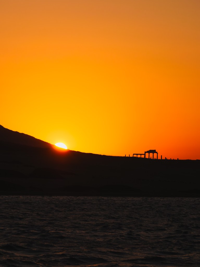 Arriving at a crowded anchorage, we found a spot on the free jetty where we stayed for two nights. A walk to the red beach was a little underwhelming, but we enjoyed feeding stray cats and taking a dinghy trip around the island. On the way back we were joined by two dolphins, who explored curiously before swimming away.